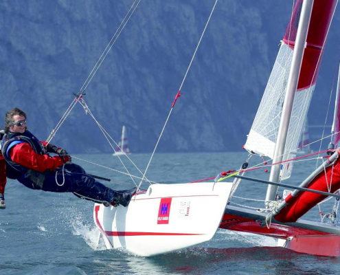 Die schon bei leichten Windstärken erreichten, rasanten Geschwindigkeiten und das etwas andere Manövrierverhalten erfordern spezifische Kenntnisse und Fertigkeiten. Diese werden in einem speziellen Lehrgang an einer VDS-Schule unter fachkundiger Anleitung trainiert und nach einer Prüfung im Catamaran-Grundschein bescheinigt. Die Ausbildung zum Catamaran-Grundschein in sehr Praxis bezogen und vermittelt das sichere Handling des Catamarans in allen Situationen. In weiterführenden Aufbaukursen können Sie das Segeln im Trapez und Fortgeschrittenen-Manöver erlernen. Vielleicht ist Regattasegeln etwas für Sie?